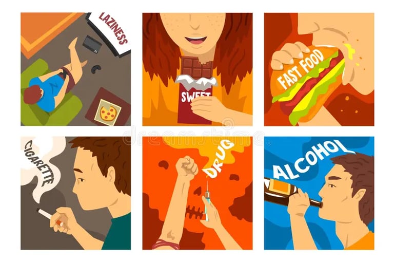 • Reforço biológico: alguns hábitos ativam o sistema de recompensa do cérebro, criando dependência ou compulsão.